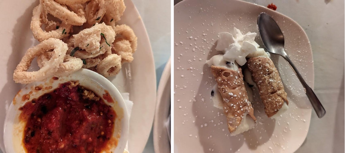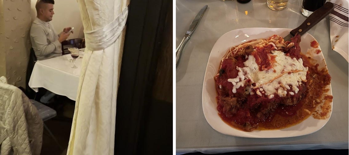 So cozy, reasonably priced but more importantly the food is superb. We got the homemade ravioli with vodka sauce and chicken parm. Delicious and one of the best old school Italian places I’ve ever been to.